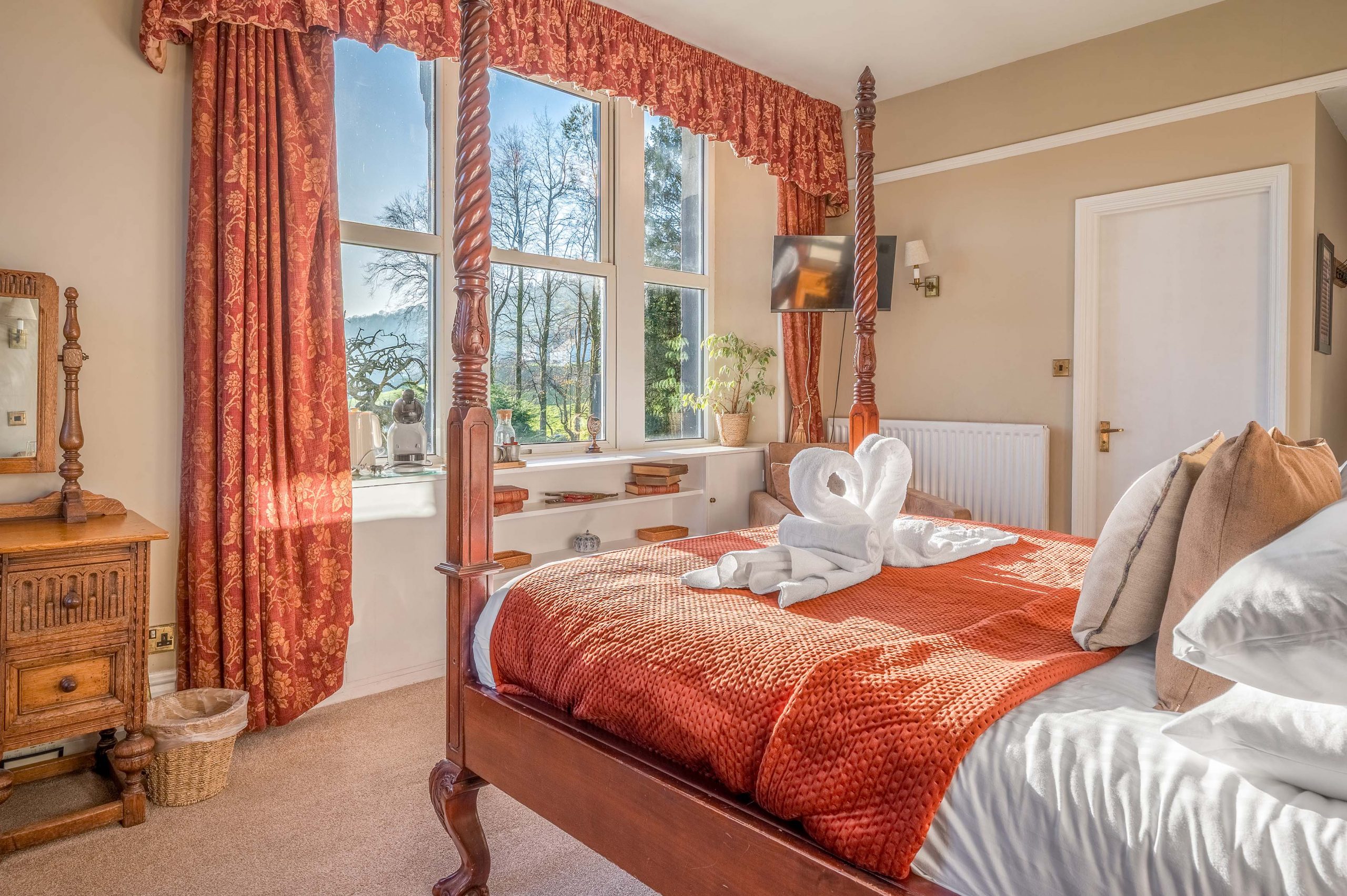These range from classic, Standard with garden views, Superior with garden views and Four Poster room. All rooms have a bath, tea & coffee making facilities, towels & linen & shower gel and handwash. Hot water bottles can be provided on request during the Winter months for extra comfort.